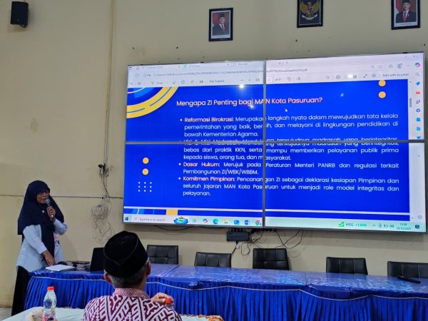 Madrasah Aliyah Negeri (MAN) Kota Pasuruan semakin memantapkan komitmennya untuk mewujudkan tata kelola yang bersih, transparan, dan akuntabel. Bertempat di aula madrasah, seluruh jajaran dewan guru dan tenaga kependidikan mengikuti..